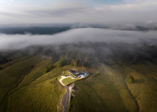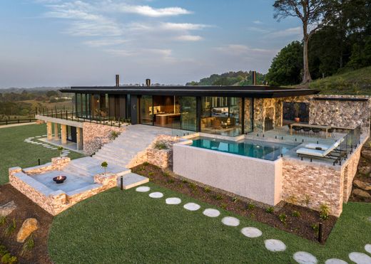 Dominant une région de 48 hectares au cœur de l'arrière-pays préservé de Byron Bay, Coda se dresse comme l'apogée d'une vision d'une beauté brute et d'une forme intemporelle. Véritable chef-d'œuvre évoquant les collines d'Hollywood, cette résidence sculpturale allie précision architecturale et robustesse élémentaire, où béton, verre et bois s'entremêlent dans une sublime fusion de tons riches et neutres. Enracinée profondément dans la roche basaltique ancestrale, la maison puise littéralement sa force et sa pérennité dans le sol. Le béton brut, l'acier et la pierre créent une matérialité organique qui éveille les sens, contrastant avec le summum du confort et des finitions modernes. À l'intérieur, des plafonds de 3 mètres de haut, des puits de lumière et des baies vitrées toute hauteur offrent des panoramas dignes d'un film sur les collines verdoyantes et les montagnes lointaines, tandis que les sols en béton poli, les menuiseries en noyer et l'éclairage d'ambiance instaurent une atmosphère de sophistication discrète. L'espace de vie généreux est un atout majeur : de multiples zones spacieuses conçues aussi bien pour la détente que pour recevoir avec élégance. Au cœur de cette demeure se trouve un sanctuaire ouvert où l'architecture se fond dans le paysage : des baies vitrées coulissantes disparaissent pour révéler des terrasses, un bassin et une piscine à débordement qui reflète le ciel. La cuisine, conçue à partir de matériaux naturels nobles, est équipée d'électroménagers européens haut de gamme, de nombreux rangements et s'ouvre harmonieusement sur les espaces repas extérieurs. Fraîchement construite, cette maison neuve a été réalisée dans les moindres détails selon les normes internationales, du double vitrage à rupture de pont thermique et de la domotique Savant à la filtration UV intégrale et à l'infrastructure de gestion des eaux pluviales de qualité professionnelle. Une conception intelligente garantit durabilité, intimité et confort optimal, tandis que le vaste domaine offre un potentiel infini pour la création de jardins aménagés, de promenades de sculptures ou d'activités équestres. Coda est plus qu'une résidence : c'est une symphonie d'authenticité, d'individualité et de sobriété. L'aboutissement d'un parcours créatif extraordinaire et un jalon de la nouvelle architecture vernaculaire de Byron Bay. - 48 hectares d'arrière-pays privé à Byron Bay avec des vues à couper le souffle - Résidence d'architecte flambant neuve ancrée dans la roche basaltique - Salle de sport et sauna entièrement équipés - Conçue par Llewella Griffiths Architects et construite par le maître d'œuvre Hammerhead - Plusieurs espaces de vie spacieux avec hauts plafonds et puits de lumière - Cuisine sur mesure avec appareils électroménagers européens haut de gamme - Piscine à débordement et jeux d'eau sculpturaux - Domotique Savant complète, filtration UV et efficacité thermique - Conception de gestion des eaux pluviales de qualité commerciale et drainage technique - Une rare expression de design, de savoir-faire et d'individualité - le summum du luxe.