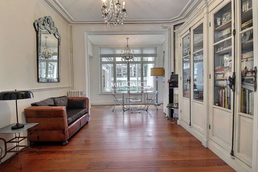Située entre l'avenue Louise et la place Fernand Coq, dans une rue calme et très peu de circulation, cette maison bourgeoise d'environ 309m² (selon PEB), rénovée avec soin offre une belle combinaison de charme ancien et de confort moderne. Au rez-de-chaussée, un vaste hall d'entrée qui mène vers un double salon et une salle à manger élégante. La cuisine s'ouvre sur un agréable patio et offre un espace de vie convivial, idéal pour recevoir. Aux étages, la maison propose cinq belles chambres, dont une suite parentale avec dressing et salle de bain privative. Deux autres salles de bain desservent les chambres supplémentaires. Un espace bureau, calme et bien séparé complète l'aménagement. En plus du patio, deux terrasses, au 1er et 2e étage, permettent de profiter d'extérieurs en toute intimité. Le sous-sol comprend une buanderie, une cave à vin, une cave de rangement et une cave à outils. PEB F.