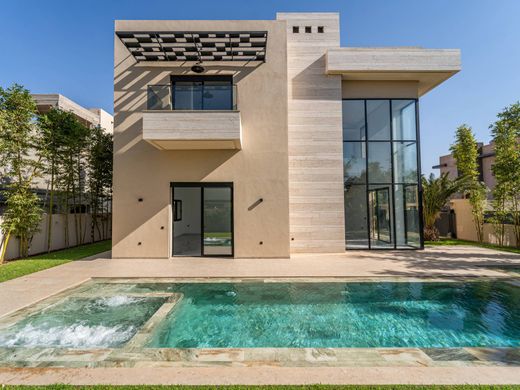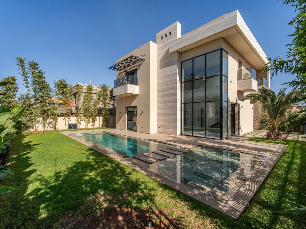 Morocco Sotheby's International Realty à Marrakech vous présente cette villa située au sein du Golf de Noria, à moins de 10 min. du centre ville. Sise sur un terrain de 560 m², elle offre un cadre apaisant à proximité de la ville. Dès l'entrée, cette villa de 497 m² habitable vous plonge dans un univers de raffinement avec ses aménagements luxueux et ses finitions haut de gamme. L'intérieur spacieux se compose de trois grands espaces de vie, baignés de lumière grâce à de nombreuses baies vitrées. Un agréable jardin exotique offrant de majestueux palmiers mexicains et de faux bananiers distille une ambiance fraîche et relaxante. Une terrasse prolonge l'espace de vie. La piscine, à débordement, apporte un effet miroir. A cela s'ajoute le jacuzzi, pour des moments de détente inoubliables. Le rez-de-chaussée comprend une entrée avec un WC invités, une cuisine fermée, entièrement aménagée et équipée d'appareils qualitatifs. Le vaste séjour est constitué de deux salons et d'une salle à manger, l'ensemble étant agrémenté d'une cheminée et baigné de lumière grâce à de grandes baies vitrées et un plafond cathédrale. À l'étage, l'espace nuit se compose de cinq suites spacieuses, chacune équipée de sa propre salle de bains et d'un dressing. Enfin, profitez de moments privilégiés et d'une magnifique vue sur l'Atlas depuis le rooftop aménagé de la villa. Autres: piscine à débordement, jacuzzi intégré, système d’arrosage automatique, jardin exotique, domotique avancée, climatisation réversible, parking. Aux portes de la ville, cette villa offre un accès rapide aux quartiers du Gueliz et de l'Hivernage ainsi qu'à l'aéroport de Marrakech. Pour plus d’informations, veuillez contacter Franck Le Péculier au +212 6 63 15 92 44.