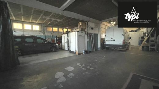 Grand garage monté sur charpente métallique avec bardage en agglomérés de 350 m²,