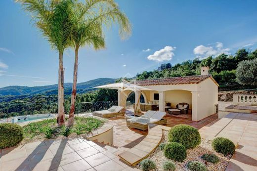 Idéalement située en position dominante sur un terrain de près d’un hectare, elle bénéficie d’un panorama époustouflant sur les collines environnantes, jusqu’à la mer et aux îles de Lérins.