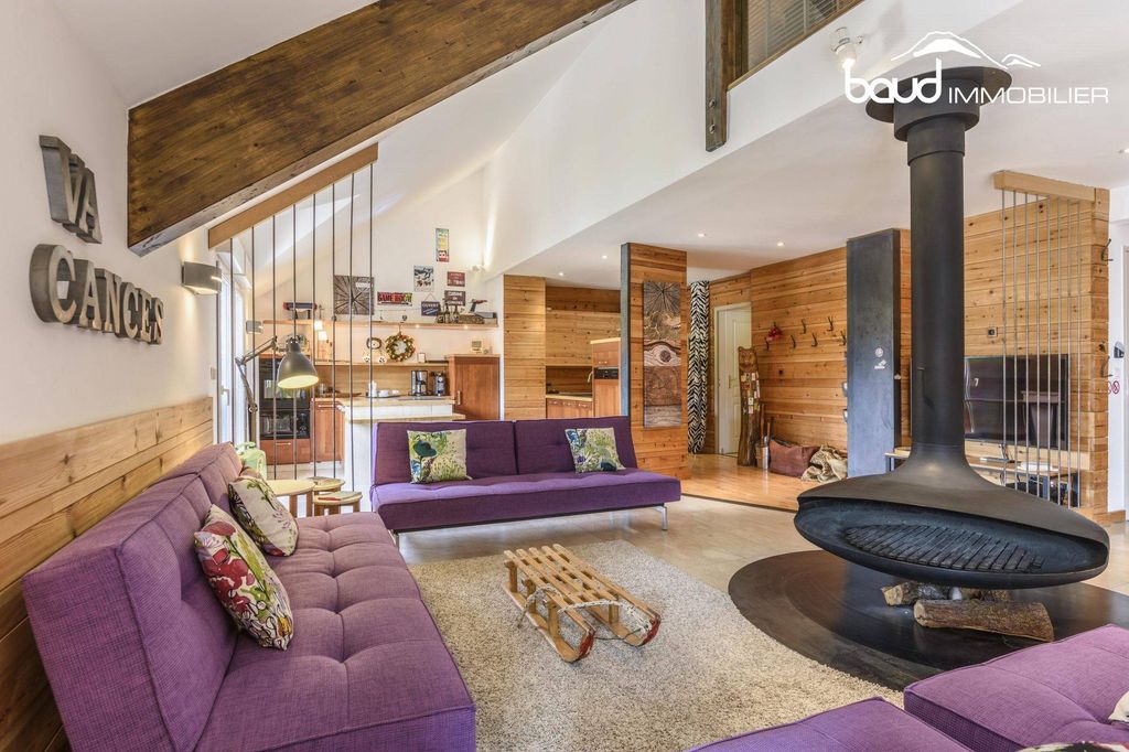Au quatrième étage de la résidence, l'ascenseur s'ouvre sur son palier privé façon chalet, entrée sur la pièce de vie de74 m² tournée vers le Sud, avec sa cheminée focus.... Ouverte sur le balcon, elle offre une vue panoramique imprenable !