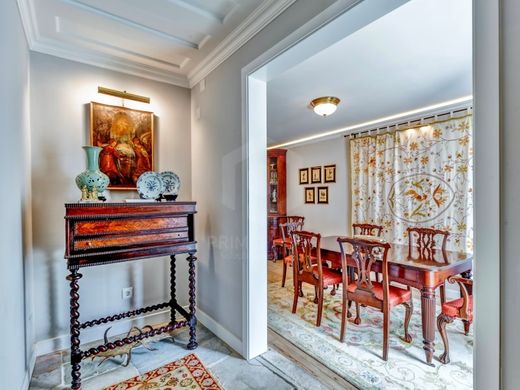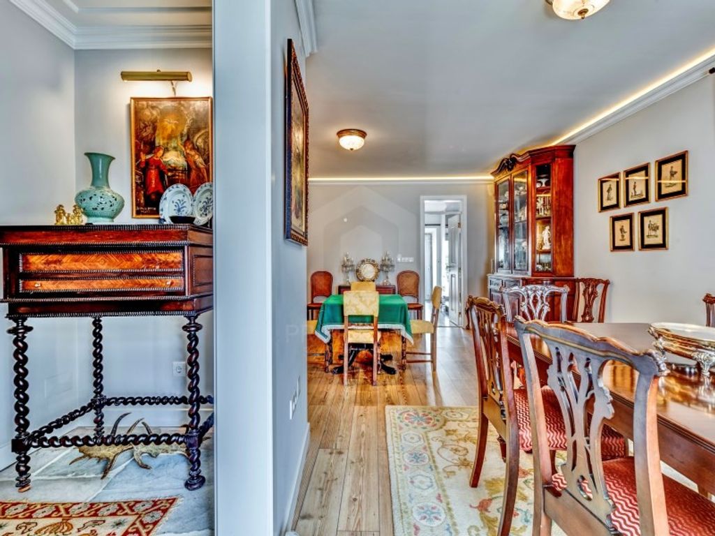 A cet etage, nous trouvons egalement un couloir orne d'une elegante fresque et une salle de bain complete avec baignoire pour soutenir les autres chambres. A l'interieur d'une des chambres, une porte mene a un escalier menant a un espace supplementaire magnifique, avec un plafond a poutres en bois, une fenetre Velux offrant une vue degagee sur Lisbonne et les espaces de stockage.