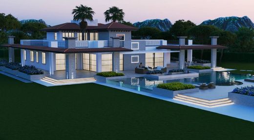 Les images présentées sont des rendus d'un projet prévoyant la démolition complète de la villa existante, suivie de la reconstruction et de l'agrandissement des surfaces existantes. La nouvelle villa bénéficiera d'une orientation optimale afin que la maison et la piscine profitent d'un ensoleillement constant du lever au coucher du soleil. Le parc d'environ 10 000 mètres carrés a été entièrement repensé et comprend un double accès, de vastes parkings sous pergolas et des zones ombragées. La propriété disposera d'une surface commerciale totale d'environ 1 600 mètres carrés.