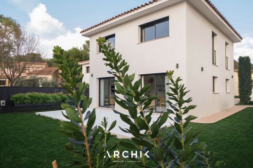 Architecture contemporaine, cette villa de 122 m2 se dresse sur un terrain paysagé de 560 m2 dans le village de Ceyreste.