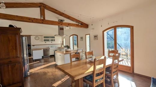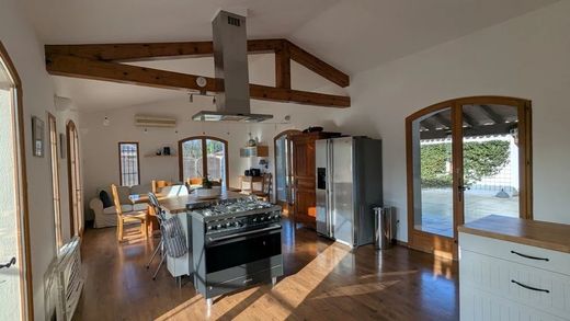 Dans un quartier résidentiel calme et en impasse, à seulement quelques minutes du centre du village, cette charmante villa traditionnelle construite en 1997 offre une surface habitable de 161m² sur un terrain clos et paysager de 2.619m², majoritairement plat. Le jardin, soigneusement entretenu, propose de nombreux espaces de détente ainsi que plusieurs places de stationnement. L’entrée de la maison s’effectue par un vaste patio de 100m², menant à une belle cuisine ouverte sur un séjour lumineux de 39m², exposé Sud et Ouest, avec vue sur le jardin luxuriant et la piscine. Un grand salon de 40m² avec poêle à bois complète l’espace de vie. Au rez-de-chaussée, vous trouverez une suite parentale avec salle d’eau ainsi qu’une salle d’eau/WC pour les invités. À l’étage, trois chambres dont une chambre d’enfant, et une salle de bains avec WC. La maison est équipée de double vitrage bois, volets bois, parquet au rez-de-chaussée, fibre optique, climatisation et convecteurs électriques. Une terrasse côté Sud permet de profiter pleinement du jardin, alimenté par un canal d’arrosage. La piscine traditionnelle de 9x4m, au chlore, dispose d’un petit et d’un grand bain. Un garage de 50m² abrite la machinerie de la piscine et offre un vaste espace de stockage en plus d’un emplacement pour véhicule. Le jardin est planté de nombreux fruitiers et oliviers. Offrant de beaux volumes, une excellente exposition et une ambiance chaleureuse été comme hiver, cette villa est un véritable havre de paix à découvrir sans tarder.