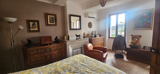 OLLIOULES -Au sommet d'une colline, entourée de verdure se dresse fièrement une bastide datant de l'année gracieuse de 1830, mitoyenne par un côté. Cette élégante demeure capture l'essence du charme provençal . Elle a été entièrement rénovée en 2018. En franchissant la porte massive, vous êtes acceuilli par un vestibule aux carreaux de ciment et par un majesteux escalier recouvert de terre cuite. Le salon de taille moyenne avec ses poutres apparentes et son poele à bois est le coeur chaleureux de la maison. Les grandes fênetres laissent entrer la lumiere naturelle créant une ambiance douce et cosy. La cuisine est fonctionnelle, équipée d'appareils modernes tout en conservant la charme d'antan. Les chambres à coucher sont des havres de tranquillité dont les fênetres s'ouvrent sur des vues de la campagne environnante. Deux niveaux distribuent respectivement quatre chambres, spacieux dressings et une salle d'eau. Enfin, le jardin entourant la bastide offre plusieurs espaces de detente avec des terrasses ombragées. S'ajoute à ce bien, un grand garage et des dépendances. Cette bastide de caractère incarne la charme intemporelle de la provence avec ces petites pièces qui creent une atmosphère intime et acceuillante. Toutes les commodités à pied à 800 mètres du beau village provençal d'Ollioulles.