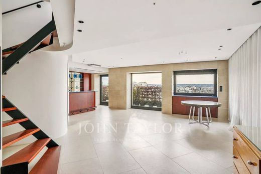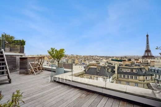 -la chambre principale avec son dressing intégré, une terrasse et une vue exceptionnel sur la Tour Eiffel,