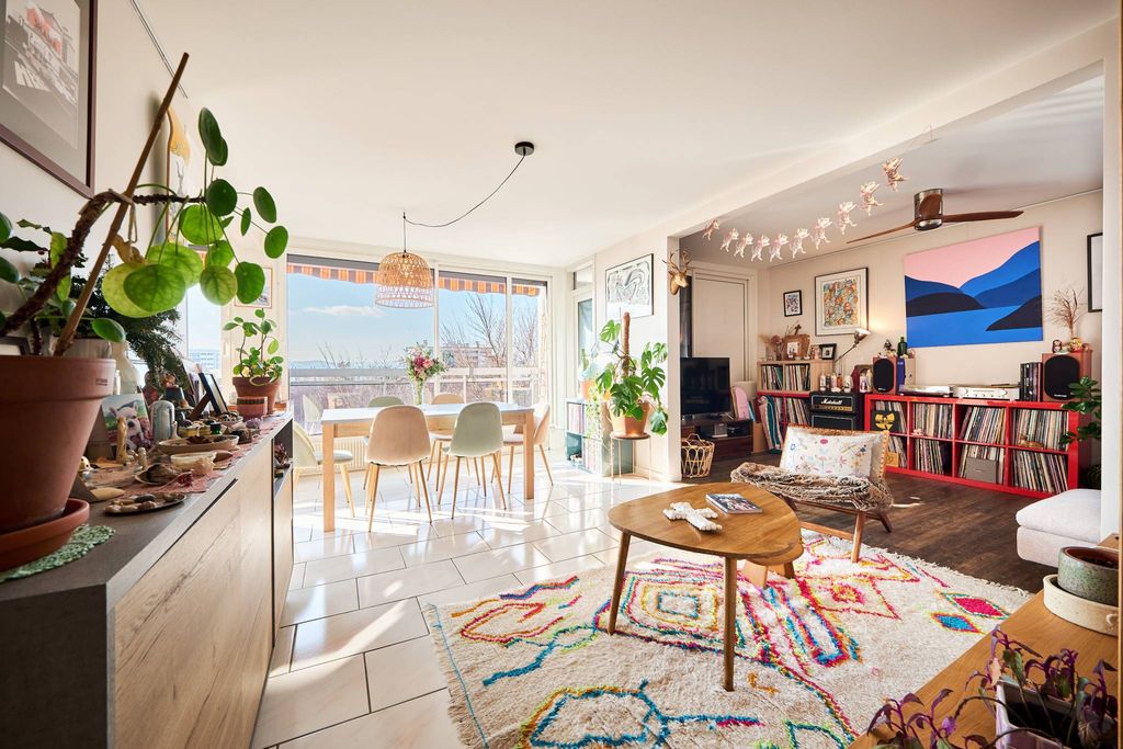 Découvrez ce bel appartement familial de 110 m2 carrez et 114 m2 au sol , situé en étage élevé avec ascenseur, au sein d’une copropriété bien entretenue des années 1980, offrant de grands volumes, une belle luminosité et une vue dégagée. Dès l’entrée, vous serez séduit par les nombreux rangements intégrés, pensés pour un quotidien pratique et organisé. La pièce de vie spacieuse accueille un grand salon-séjour double avec une cuisine équipée semi ouverte, idéal pour recevoir et profiter d’un espace chaleureux et convivial. Elle s’ouvre sur une loggia et sur un balcon avec vue dégagée, véritable prolongement de l’espace de vie. La distribution de l’appartement est particulièrement fonctionnelle et adaptée à une famille :Côté parents : une chambre principale salle de bains.Côté enfants : deux chambres avec salle d'eau, ainsi qu'un dégagement avec rangements. Le chauffage collectif urbain complète le confort de ce bien.
