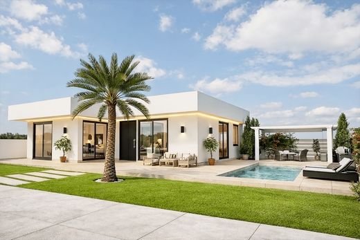 À l'intérieur, la maison est conçue pour optimiser la lumière naturelle et la sensation d'espace. Cette villa est construite selon les normes les plus exigeantes (isolation renforcée, double paroi, cuisine équipée haut de gamme avec plan de travail en Silestone et électroménager intégré, salle de bains élégamment carrelée). Elle est également dotée de commodités modernes telles qu'internet haut débit, des prises électriques extérieures, des robinets d'eau pour l'arrosage, le lavage des voitures et l'entretien du jardin. Un local de rangement extérieur est également inclus. Des panneaux photovoltaïques alimentent le ballon d'eau chaude.