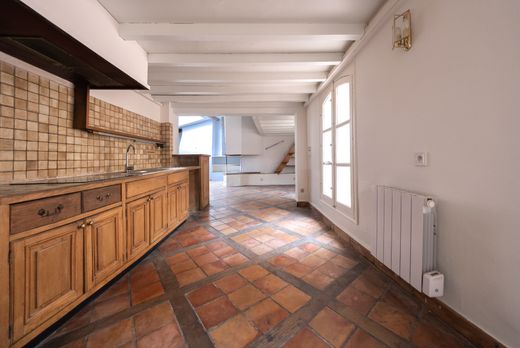 L’agencement intérieur est fonctionnel et raffiné. L’appartement comprend une entrée, une cuisine, un séjour lumineux avec cheminée, ainsi qu’une alcôve, pouvant servir de bureau ou de bibliothèque, une chambre, une salle de bains et un WC indépendant. Un coin nuit avec salle d’eau attenante complète ce niveau, idéal pour un enfant ou des invités.