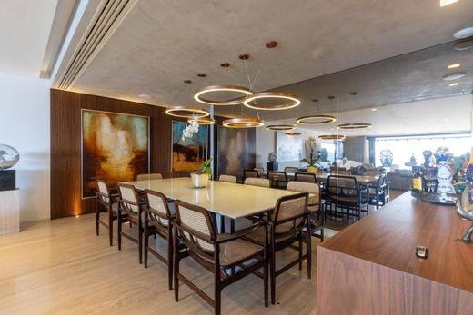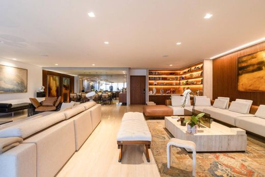 Cet appartement occupant tout un étage, situé en bord de mer à Ipanema, présente un agencement rectangulaire qui optimise la circulation et l'intégration des espaces de vie. L'espace de vie comprend un vaste salon face à l'océan avec accès au balcon. L'aile privée se compose de quatre chambres, dont deux suites, parmi lesquelles une suite parentale avec baignoire balnéo et double vasque, ainsi qu'un salon TV intime et des toilettes. La cuisine, spacieuse et fonctionnelle, est ouverte sur l'espace de service comprenant un logement complet pour le personnel. La copropriété offre deux places de parking, un parking visiteurs, un service de conciergerie et de sécurité 24h/24, et fait actuellement l'objet d'une rénovation visant à moderniser les parties communes et l'ensemble des infrastructures.