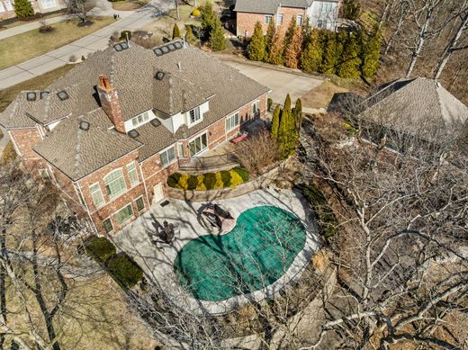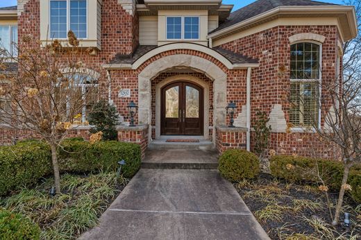 Cette impressionnante demeure de plus de 557 m² (6 000 pieds carrés), construite en briques et en pierre calcaire, est située sur un terrain de 5 220 m² (1,29 acres) à Sunset Hills et comprend une maison d'amis indépendante de plus de 186 m² (2 000 pieds carrés) sur deux étages. Son agencement bien pensé est idéal pour la vie quotidienne comme pour recevoir. Le parquet en bois massif se prolonge du salon et de la salle à manger jusqu'à la cuisine. Cette dernière offre de nombreux rangements, un vaste plan de travail, un grand cellier et un coin repas ouvert sur la salle familiale. Le spectaculaire salon, avec sa double hauteur sous plafond, est agrémenté d'une cheminée à double foyer partagée avec la salle familiale, tandis qu'une bibliothèque circulaire crée un espace agréable pour lire ou travailler. La suite parentale, située au rez-de-chaussée, comprend une double vasque, une baignoire, une douche séparée et un dressing. À l'étage, une mezzanine surplombe le hall d'entrée et dessert trois chambres : une avec salle de bains privative et deux partageant une salle de bains. Le sous-sol, accessible de plain-pied, agrandit l'espace de vie avec une salle familiale dotée d'une cheminée, un coin bar, une chambre et une salle de bains complète. Cette maison d'hôtes offre une grande flexibilité : un appartement privé à l'étage comprend une cuisine entièrement équipée et une salle de bains ; au rez-de-chaussée, une cave à vin fraîchement repeinte est coiffée d'un plafond voûté. À l'extérieur, vous profiterez d'une piscine et d'un spa, ainsi que d'un jardin de plain-pied avec une balançoire.