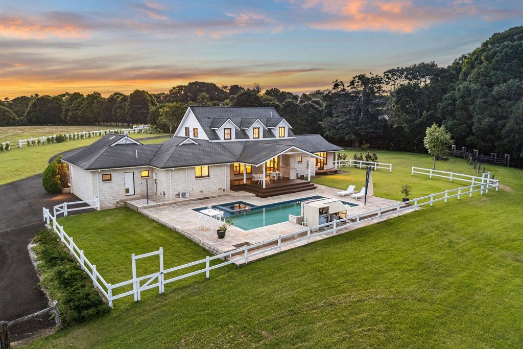 Nichée au fond d'une impasse tranquille, cette propriété exceptionnelle de 7,7 hectares offre un équilibre rare entre sérénité rurale et commodités quotidiennes, au cœur de l'un des quartiers résidentiels les plus prisés de la région de Northern Rivers. Entourée d'un parc arboré, de vastes pelouses et d'un ruisseau paisible, la propriété offre un cadre champêtre serein à proximité immédiate des écoles, des commerces et des principaux axes de transport. Au centre du domaine se dresse une accueillante maison de style ranch américain, baignée de lumière naturelle et caractérisée par de hauts plafonds, des parquets en bois de Blackbutt et des volumes généreux. Plusieurs espaces de vie et de repas s'ouvrent harmonieusement sur une terrasse couverte donnant sur la piscine de style resort, idéale pour de longs déjeuners, des réunions au bord de l'eau et des moments de détente en famille. Conçue pour accueillir de grandes familles ou plusieurs générations, la maison offre cinq chambres, plus un bureau ou une sixième chambre en option, dont une suite parentale intime avec dressing, salle de bains et terrasse privative. L'ensemble comprend de vastes dépendances, un studio indépendant et des enclos entièrement clôturés, parfaits pour les chevaux ou le bétail. L'envergure et les infrastructures de la propriété en font bien plus qu'une simple résidence secondaire : un véritable domaine rural de prestige, à seulement 20 minutes de l'aéroport de Ballina Byron Gateway et à 25 minutes de Byron Bay. - Propriété privée et pittoresque de 7,7 hectares (19 acres) située au fond d'une impasse tranquille - Maison de style ranch américain aux intérieurs lumineux et accueillants - Cinq chambres, plus un bureau/sixième chambre, trois salles de bains - Suite parentale avec dressing, salle de bains attenante et terrasse privée - Parquet en blackbutt, hauts plafonds et persiennes - Plusieurs espaces de vie et de repas avec une transition fluide entre l'intérieur et l'extérieur - Terrasse couverte donnant sur une piscine de style resort - Cuisine de qualité avec plans de travail en pierre, électroménager haut de gamme et cellier - Studio indépendant avec kitchenette et parking couvert - Nombreux hangars, dont un grand bâtiment de 12 m x 15 m - Paddocks entièrement clôturés, adaptés aux chevaux ou au bétail - Bordure de ruisseau paisible et arbres matures avec de vastes pelouses - Garage double et nombreuses places de parking supplémentaires - À 20 minutes de l'aéroport de Ballina Byron Gateway et à 25 minutes de Byron Bay