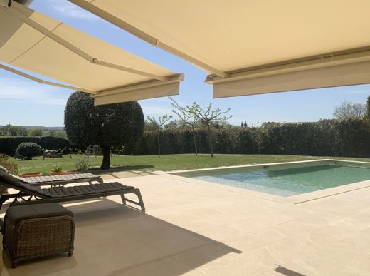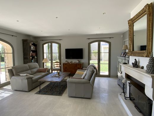 En exclusivité, l’agence Sindy Micots Immobilier vous propose, à seulement 10 minutes d’Uzès, au cœur d’un village avec commodités, un mas contemporain situé dans un quartier résidentiel. Au rez-de-chaussée, vous découvrirez un vaste espace de vie baigné de lumière grâce à une exposition sud-ouest, composé d’un salon avec cheminée, d’une salle à manger ouvrant directement sur une large terrasse, ainsi que d’une cuisine fonctionnelle entièrement équipée. Une suite parentale avec salle de bains privative complète ce niveau. À l’étage, le bien offre une chambre en suite ainsi que deux autres chambres se partageant une salle de bains, dont l’une dispose d’un dressing. Le jardin, entièrement clos, s’organise autour d’une piscine de 10 x 4 m et d’une terrasse avec cuisine d’été, permettant de profiter pleinement des extérieurs. Un garage carrelé et isolé vient parfaire l’ensemble. De nombreuses prestations de qualité (arrosage automatique, climatisation réversible, aspiration centralisée…) font de ce bien une propriété d’exception.