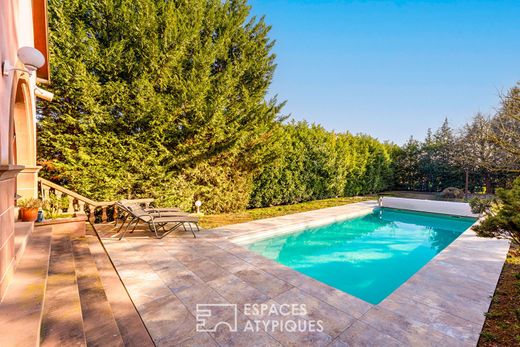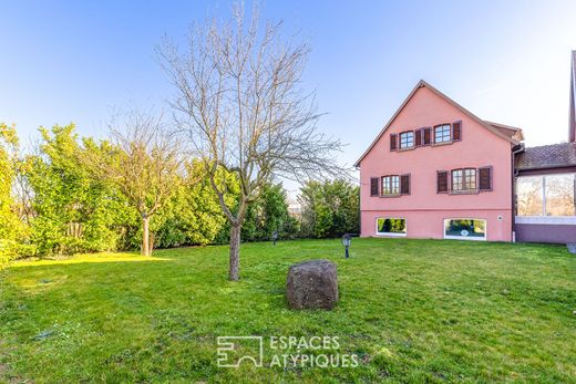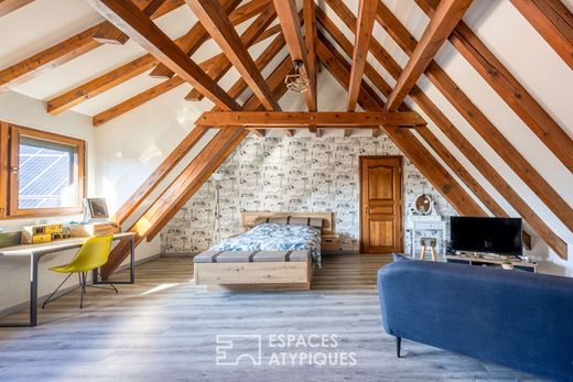 Cette maison de 237 m² a bénéficié d'une rénovation audacieuse, transformant ses volumes originels en une résidence contemporaine d'exception. Érigée sur une parcelle de 19 ares, la propriété se distingue par ses prestations haut de gamme, ses aménagements extérieurs complets incluant une piscine, une vaste terrasse chauffée et un jardin arboré. Ce bien singulier allie le charme de l'ancien à une architecture intérieure résolument moderne, offrant un cadre de vie rare sur le marché local. L'entrée s'effectue par un sas discret qui mène à une pièce de vie magistrale de 38 m². Ici, le plafond cathédrale s'élève à plus de sept mètres, créant une sensation de volume vertigineuse où trône une mezzanine en bois chaleureuse. Une cloison de caractère, mêlant habilement poutres de structure et parois vitrées, délimite l'espace sans occulter la perspective vers la salle à manger et la cuisine équipée. La luminosité est omniprésente grâce à de larges baies vitrées qui effacent la frontière entre intérieur et extérieur. Une salle d'eau avec un accès direct vers l'extérieur et la piscine complète ce niveau. L'étage, desservi par un escalier en béton, accueille une salle d'eau ainsi qu'une vaste chambre de 35 m² qui offre un accès vers la mezzanine. Le niveau inférieur, tourné vers l'arrière du terrain, dévoile une suite parentale avec dressing et une salle d'eau monumentale de 42 m². Ces lieux de vie disposent d'accès directs sur les extérieurs. Le confort thermique est assuré par un plancher chauffant alimenté par un système hybride performant (pompe à chaleur eau/eau et fioul). Les espaces extérieurs ont été conçus comme un prolongement naturel de l'habitation. La terrasse principale, couverte et dotée d'un plancher chauffant, permet de profiter des soirées en toute saison. Le jardin parfaitement entretenu s'articule autour d'une piscine de 10x4 mètres et d'un terrain de pétanque, invitant à la convivialité. Plusieurs places de parking et un portail électrique apportent une dimension fonctionnelle à ce parc paysager. La propriété bénéficie de la proximité immédiate des commodités urbaines, des écoles et des commerces de Bennwihr-Gare, facilitant le quotidien. Cette réalisation architecturale se définit par ses contrastes maîtrisés et ses jeux de hauteurs sous plafond pour une signature esthétique forte. C'est un lieu de vie atypique qui séduira les amateurs de volumes hors normes en quête d'un habitat à la fois élégant et fonctionnel. 4 places de stationnement 2 caves Commerces à 5 min à pied Ecoles à 5 min en voiture Arrêt de bus à 7 min à pied Gare de Colmar à 15 min Autoroute à 4 min Aéroport à 40 min CLASSE ENERGIE : C / CLASSE CLIMAT : C Montant moyen estimé des dépenses annuelles d'énergie pour un usage standard, établi à partir des prix moyens des énergies indexés sur les années 2021, 2022, 2023 (abonnements compris) : entre 3240 et 4430 euros Contact : Marc 07.44.88.95.17 Marc CALOGERO (EI) Agent Commercial - Numéro RSAC : 982590853 - Colmar.