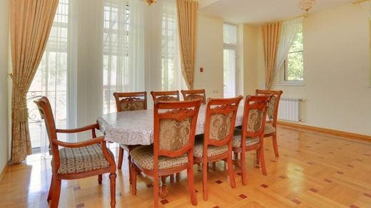 Numero oggetto: RU0638. Vendesi casa sull'autostrada Rublevo-Uspenskoe, a 6 km da MKAD, nel complesso residenziale Barvikha. Casa in mattoni su tre livelli, con una superficie totale di 720 mq, situata su un terreno di 25 acri. C'è un garage per 2 auto. Tutte le comunicazioni sono centralizzate. La casa è pronta per essere abitata. Nel seminterrato: spogliatoio, 2 ripostigli, locale caldaia, palestra con accesso al terreno, lavanderia, cassaforte, 2 bagni. Al primo piano: ingresso, spogliatoio, cucina con ripostiglio, zona pranzo con accesso alla terrazza, sala con camino con accesso alla terrazza, camera da letto con balcone e bagno, studio, bagno per gli ospiti, area benessere: piscina, sauna, doccia, bagno, ripostiglio. Al secondo piano: una camera da letto con uscita su balcone, terrazza e bagno, una camera da letto con balcone, una camera da letto principale con bagno, spogliatoio e balcone, una camera da letto con bagno e spogliatoio, una sala biliardo con bar. Sul terreno: un gazebo-barbecue, una serra, una casa per il personale di servizio. TWEED Real Estate è membro dell'associazione AREA.