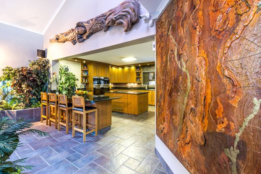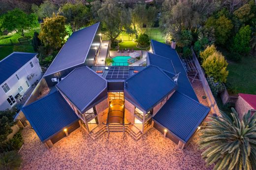 La casa dei sogni di un intrattenitore, costruita da un maestro, confinante con il fiume Eerste e circondata da un'ampia vista sulle montagne. Lo stile è il segno distintivo di questa splendida casa di famiglia. Questa casa elegante e senza tempo è l'epitome della vita lussuosa a Stellenbosch. Il gusto raffinato e le migliori finiture assicurano un'armonia di luce e spazio. Sperimenta i massimi livelli di comfort insieme a privacy, sicurezza e strutture di intrattenimento eccezionali. Rimarrai stupito dalle caratteristiche e dal layout unico. Le cupole dei lucernari donano luce naturale ai soffitti a triplo volume della reception. Al centro della zona giorno extra large con soffitti alti troverete il soggiorno incassato e la caratteristica cascata di roccia che si apre su una piscina personalizzata da 100.000 litri con vasca idromassaggio. La cucina ben progettata, con elettrodomestici Miele e piani in granito Emerald Pearl, dispone di una spaziosa dispensa walk-in, retrocucina e un'ampia lavanderia. La struttura dispone di 8 ampie camere da letto, sette delle quali con bagno privato. Al primo piano si trova l'elegante camera da letto principale con un'enorme cabina armadio, una vasca idromassaggio e una parete a specchio dal pavimento al soffitto nel bagno extra large. Cammina sui balconi privati per goderti le viste mozzafiato sulle montagne e sul fiume. La seconda camera da letto al primo piano è elegante con una grande porta scorrevole e balcone con vista sulle montagne. L'ala ovest della casa a due piani comprende 6 ampie camere da letto con bagno privato. Questa zona è accessibile senza entrare dalla porta d'ingresso ed è completamente privata rispetto alla casa principale. Tutte le 6 camere da letto si aprono sull'area della piscina con grandi porte scorrevoli in vetro. Quattro di queste suite sono concesse in licenza e possono essere gestite come attività. Questa sezione è stata meticolosamente progettata per la massima privacy. Al piano terra c'è una sala da pranzo, un bagno per gli ospiti e un'area salotto extra con porte scorrevoli in vetro, che offrono privacy dalla zona soggiorno/TV principale. L'intera area intorno alla piscina, il patio coperto, le scale e i balconi al piano superiore sono rifiniti con moquette al quarzo (pietre di quarzo). La sala da biliardo all'aperto dispone di uno splendido bar integrato, braai al coperto, armadi in legno per dormire e un bagno con doccia. Altre caratteristiche includono: due garage doppi e ampi parcheggi custoditi per 10 veicoli extra, 2 alloggi per il personale con bagno privato, acqua da un pozzo fluviale che passa attraverso due serbatoi da 5000 litri e sistemi di filtrazione e un sistema di energia solare a 18 pannelli con 16 accumulatori di backup a batteria. Infine, il sistema di sicurezza all'avanguardia comprende recinzioni elettriche avvolgenti, 3 breme laser di sicurezza, allarme, cancelli a traliccio a doppia serratura davanti alla maggior parte delle porte e finestre e un sistema di telecamere a circuito chiuso con telecamere. Situato in un'area privilegiata a pochi passi dalle principali scuole come Rhenish Primary and Girl's High Schools, Eikestad Laerskool e Paul Roos Gymnasium, un centro commerciale, una Medi-Clinic e lo Stellenbosch Town Center. E per gli appassionati di golf non lontano dai campi da golf di Stellenbosch e De Zalze Winelands. Questa casa è un'oasi che ogni famiglia fortunata sarebbe orgogliosa di chiamare casa.