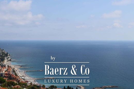 Nella campagna sopra la città fronte mare di Ospedaletti disponiamo di questa fantastica villa in vendita di 570 m². La villa ha una vista spettacolare a 180° sulla baia di Ospedaletti e sul Mediterraneo. La villa si compone di due livelli: al piano terra si trova l'enorme soggiorno con una grande cucina professionale open space e una sala da pranzo. Attiguo è un giardino d'inverno / veranda coperta e chiusa con una seconda cucina con barbecue e splendida vista sul mare. A questo livello si trova anche l'ampio garage per più auto, la doccia per la piscina e una lavanderia. Per tutta la lunghezza del piano terra si trova un "portico" e tramite le scale si accede alla piscina a sfioro riscaldata e all'ampia terrazza con vista mare. Al primo piano si trovano 6 camere da letto, 4 bagni, la camera padronale con studio, cabina armadio e l'ampio bagno con vasca idromassaggio. La camera da letto principale ha accesso diretto al terrazzo.