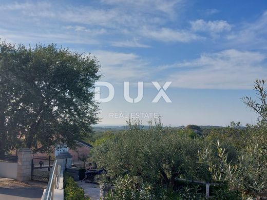 ISTRIA, ROVIGNO - Bella villa con vista sul mare La pittoresca e affascinante città di Rovigno, situata sulla costa occidentale della penisola istriana, un tempo era un porto e un villaggio di pescatori, e oggi è una delle destinazioni turistiche più sviluppate con i suoi combinazione unica di tradizionale e moderno. Combina con successo la tradizione di un villaggio di pescatori con le moderne tendenze turistiche, una ricca offerta gastronomica e un servizio turistico di alto livello. Proprio per questo attira molti visitatori anno dopo anno e ha registrato un record di 3 milioni di pernottamenti nelle ultime stagioni. I visitatori vi ritornano spesso, quindi perché non diventare il proprietario di una delle preziose proprietà di questa magica città. A soli 7 chilometri da questa perla del Quarnero, è in vendita una villa splendidamente decorata con vista sul mare e un cortile anteriore e posteriore recentemente ristrutturato. 390 m2 di superficie abitabile si sviluppa su seminterrato, piano terra, primo piano e mansarda. Il piano interrato è composto da un unico locale dove si trovano una palestra, un servizio igienico, un ingresso, un ripostiglio e una lavanderia. Il piano terra è composto da soggiorno con cucina e sala da pranzo, studio, bagno, antibagno, terrazzo coperto, due logge e due ripostigli. Il primo piano è composto da quattro camere da letto, due bagni, un ingresso e un terrazzo coperto. La mansarda contiene una stanza che il futuro proprietario può decorare a sua scelta. La villa è stata costruita, decorata, arredata con materiali e attrezzature di prima qualità e viene venduta come tale. Il riscaldamento e il raffrescamento sono risolti con una pompa di calore e collettori solari da 7,5 KW. Ha anche riscaldamento e raffrescamento a pavimento, quindi il consumo di elettricità è molto basso. I pannelli solari si trovano sul tetto della casa e nel giardino. Il bellissimo cortile di 934 m2 è paesaggistico e mantenuto. Sono state piantate varie piante decorative e c'è spazio nel cortile sul retro per costruire una piscina. Nel cortile sul retro è presente anche un fabbricato ausiliario che funge da ripostiglio. L'irrigazione delle piante avviene a goccia a goccia. Un parcheggio privato per diverse auto è previsto per i vostri animali di latta. Durante la costruzione e la decorazione sono stati utilizzati solo materiali di altissima qualità ed è stata prestata attenzione ad ogni dettaglio. Questa bella e spaziosa casa è l'ideale per l'affitto turistico perché Rovigno batte tutti i record da anni e più unità sono richieste per tutta l'estate. Gentili clienti, la commissione di agenzia viene addebitata in conformità con i Termini e condizioni generali. www.dux-nekretnine.hr/opci-uvjeti-poslovanja ISTRIA, ROVIGNO - Bellissima villa con vista mare