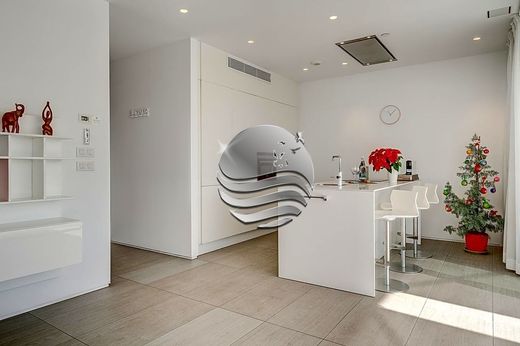 L'appartamento è ben rifinito e molto luminoso. Si compone di una spaziosa camera da letto con letto matrimoniale e armadi a muro. Il bagno è dotato di doccia e vasca con doppio lavabo. Il soggiorno è di circa 30 metri quadrati e si collega alla moderna cucina bianca completamente attrezzata con un'isola dove si trovano il piano cottura in vetroceramica e il lavello.