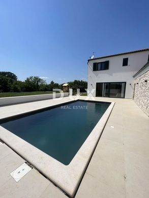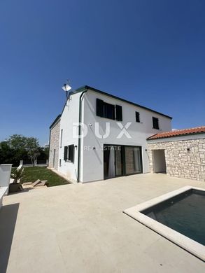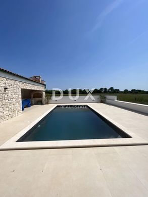 Marčana è un villaggio situato a nord di Pola, all'incrocio delle strade Pula-Labin e Dignano-Krnica, ed è la sede dell'omonimo comune. L'attraente costa marina si tuffa ripidamente nel limpido mare Adriatico. La costa è dominata da verdi penisole e baie con una bellissima vista verso l'orizzonte. Questa bellissima villa di 286 mq è in vendita a pochi chilometri dal mare. Il piano terra è composto da un open space che unisce un soggiorno, una sala da pranzo e una cucina completamente attrezzata con dispensa. C'è anche un bagno e una stanza adibita a sala giochi con servizi sociali. Il soggiorno è ricco di molta luce naturale, e le grandi pareti vetrate sono un collegamento con l'area esterna dove si trova una piscina con solarium e una cucina estiva con wc esterno e una zona pranzo coperta con vista su la piscina e il giardino. Al piano superiore ci sono 3 spaziose camere da letto, ognuna delle quali ha il proprio bagno e un ulteriore locale che viene adibito a lavanderia. Il giardino completamente recintato copre 1154 m2 e offre un parcheggio custodito, bellissime aree verdi con un piccolo parco giochi per bambini, un'ampia area prendisole e una bella piscina di 32 m2. Sulla parte esterna è presente un fabbricato ausiliario dove è presente una cucina estiva, e dove, oltre al wc esterno, si trova anche la sala macchine della piscina ed un ulteriore locale in cui si trova una lavanderia esterna e una lavanderia. Anche la posizione della casa è eccellente, è a pochi passi da negozi, ristoranti e caffè, e la prima spiaggia è a soli 5 minuti di auto. La proprietà si trova in una posizione tranquilla all'ingresso di una piccola località turistica sulla costa orientale dell'Istria, dove predominano le case vacanza e le ville di lusso. Rappresenta un'ottima opportunità di investimento nell'attività di locazione turistica dove, per l'ubicazione, la qualità e il contenuto della casa, la restituzione del denaro investito è garantita attraverso la locazione turistica. Gentili clienti, la commissione di agenzia viene addebitata in conformità con i Termini e condizioni generali. www.dux-nekretnine.hr/opci-uvjeti-poslovanja ISTRIA, MARČANA - Bella villa con piscina