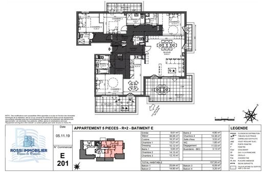 LE CANNET IN VENDITA NUOVO SVILUPPO Attivo, Consegnabile 2° trimestre 2023 Appartamento di 5 locali di 157,50 m². L'appartamento dispone di quattro balconi esposti a nord, est e sud con vista sulla baia di Cannes. Il residence si trova vicino ai negozi e dista meno di 15 minuti in auto dalla Croisette e dalle sue spiagge. L'appartamento è composto da un ampio soggiorno e una cucina, uno spogliatoio e una lavanderia, due bagni oltre a un bagno con doccia e quattro camere da letto.