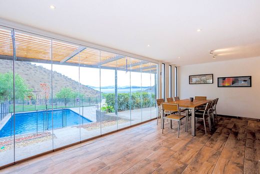 Casa in stile mediterraneo con una solida costruzione, area barbecue, campo polisportivo e piscina con vista sulla valle di Chicureo. Primo piano: ingresso, scendendo le scale troviamo un accogliente soggiorno con vista sulla valle, un bagno per gli ospiti e una sala da pranzo separata. Poi c'è la cucina attrezzata con un bar per la colazione. Zona lavanderia coperta e chiusa e una camera da letto per la domestica. Secondo piano: ci sono 4 camere da letto con 2 bagni in comune. Terzo piano: suite matrimoniale con bagno completo e cabina armadio, più un secondo soggiorno con vista sul condominio. Esterno: un giardino paesaggistico con piante e arbusti. Piscina e area barbecue con vista sulla valle di Chicureo. Campo polisportivo e parco giochi per bambini. Parcheggio coperto per 2 auto e 6 posti auto scoperti. Cancello automatico. Finiture: finestre con pannelli a doppi vetri Riscaldamento tramite radiatori (Metrogas). Sistema fognario fornito dalla compagnia idrica.