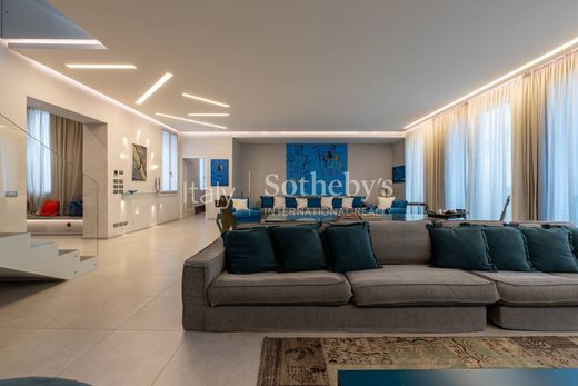 Conegliano è un'elegante cittadina dell’alto trevigiano, ricca di storia, arte e cultura, dove le atmosfere incantate del suo vivace borgo antico si fondono con il naturale fascino delle colline vinicole iscritte dall’UNESCO nella Lista del Patrimonio Mondiale. Ed è a pochi passi da Piazza Cima cuore della città, tra la silenziosa Via XX Settembre costeggiata dai prestigiosi palazzi rinascimentali ed il principale Corso Vittorio Emanuele, che sorge, vicino alla monumentale Fontana del Nettuno, questo signorile palazzo del XV secolo, ora integralmente ristrutturato e residenza tra le più esclusive. La proprietà, che si sviluppa su una gran parte del palazzo conservando affacci ed ingressi su entrambe le vie, comprende l’abitazione principale totalmente indipendente con ingresso esclusivo e servita da vano scale ed ascensore privati collegando i vari livelli terra-cielo sui quali si sviluppa, ed un alloggio adiacente, autonomo ma comunicante, per ospiti o personale di servizio. Il grande appartamento padronale con gli ambienti più importanti al piano nobile come lo spazioso salone, luminoso e curato in ogni dettaglio, con relativo bagno, disimpegno centrale con guardaroba attiguo all’ascensore e alle scale da ingresso, più defilata una raffinata sala da pranzo con cucina separata completa di ogni dotazione compresa una cantinetta refrigerata e tavolo da colazioni. La scala a vista sul salone porta al piano notte mansardato con travatura bianca ed alla terrazza privata esterna abitabile dalla quale, salendo ulteriormente, si può raggiungere il rooftop privato che, oltre a rendere unica ed ancora più esclusiva questa proprietà, offre una suggestiva vista panoramica a 360 gradi sulla città e su tutto l’ambiente circostante. La zona notte offre una generosa master bedroom con attiguo bagno, una matrimoniale con bagno privato ed una singola. Completano l’abitazione un locale mezzanino con ingresso separato, dotato di predisposizioni impiantistiche, ed ideale come fitness room o da attrezzare con una spa completa. Al piano terra il vano di entrata indipendente accessibile dalla corte interna da Via XX Settembre, mentre al collegato piano sottostante un capiente magazzino ed il locale lavanderia con interposto vano di collegamento diretto al garage privato in grado di ospitare 4 auto. L’alloggio complementare è collegato internamente dal piano nobile ma mantiene totale autonomia con ingresso indipendente ed offre un accogliente soggiorno, sala da pranzo con cucina, bagno e lavanderia, camera matrimoniale con attigua cabina armadio già dotata di ogni predisposizione per un ulteriore bagno. Tutta la proprietà è curata nei minimi dettagli, con finiture e materiali della più alta qualità, dotata di ogni comfort e di eccellenti impianti all’avanguardia anche con particolare attenzione alla sicurezza. La vicina rete autostradale collega rapidamente Treviso, Venezia e le Dolomiti.