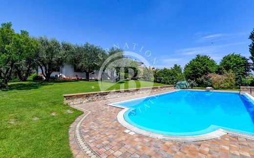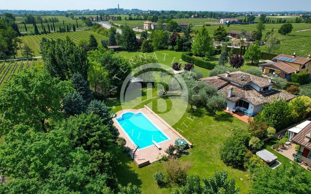 Splendida villa con piscina e parco privato a Sirmione. Immersa tra i bellissimi vigneti del Lugana, questa meravigliosa villa indipendente offre un'occasione unica per coloro che amano la tranquillità e il comfort. Con una piscina a sfioro e un parco privato piantumato di 7.000 mq, questa villa offre uno spazioso soggiorno con camino, una cucina abitabile, 3 camere da letto, ripostigli e 2 bagni al piano terra. Al piano superiore, c'è un ampio Open Space mansardato di 60 mq con una camera da letto e un bagno finestrato. Al piano interrato, c'è una splendida taverna con angolo bar e camino, un bagno finestrato, una cantina, una lavanderia e un garage doppio per una superficie totale di 140mq. La villa si trova in una posizione comoda alle principali strade di comunicazione ed è a meno di 2 km dal centro e dalle spiagge. Non lasciatevi scappare questa occasione imperdibile.