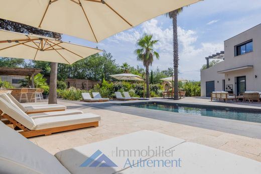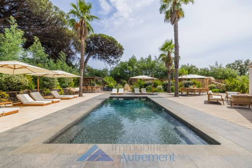 Una posizione ideale vicino alle spiagge e a 15 minuti dal villaggio di Saint Tropez, un'architettura ultra contemporanea, volumi generosi, rendono questa proprietà una proprietà unica sul mercato. Composti da due abitazioni che sviluppano ciascuna una superficie abitabile di 150 mq, sono composti da un ampio soggiorno con cucina a vista completamente attrezzata beneficiando di una doppia esposizione che garantisce luce naturale in ogni momento della giornata. La zona notte è composta per ciascuna delle abitazioni da una camera al piano terra con bagno e antibagno oltre a due camere al piano superiore con bagno con doccia e terrazzo. Il terreno completamente recintato e boscoso con una superficie di 3162 m2 vi sedurrà con la sua piscina, la sua pool house e i suoi spazi. Colonnine di ricarica da 22kw. Impianto di allarme e videosorveglianza. Costruzione 2018. (Reddito locativo stagionale: € 220.000/anno)