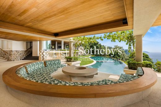 Un'oasi di lusso di eleganza senza rivali Situata all'interno dei confini esclusivi di una comunità recintata con sicurezza immobiliare 24 ore su 24, Villa Cascade è una testimonianza di raffinatezza ma eleganza casual. Questo capolavoro architettonico si estende su un vasto terreno con vista sul mare di 3.404 mq, offrendo un'esperienza di vita senza precedenti che fonde perfettamente comfort sontuosi con un ambiente naturale mozzafiato. La villa si trova accanto a una cascata aperta tutto l'anno da cui la villa prende il nome e un sentiero accanto alla cascata conduce alla baia oceanica da dove è possibile nuotare, fare snorkeling e tuffarsi. Design Raffinato e Lusso Ineguagliabile La villa vanta una superficie coperta totale di 1.800 mq, con ulteriori 700 mq di spazio scoperto. La sala da pranzo e la cucina principale si estendono lungo la zona giorno principale, dotata di porte scorrevoli a scomparsa dal pavimento al soffitto sia sul lato mare che sul lato posteriore del giardino roccioso della villa, creando un ambiente molto naturale in tutta la proprietà. Cinque sontuose camere da letto, tra cui una sontuosa camera da letto principale con annesso ufficio, offrono un rifugio intimo per i residenti. Immergiti nel lusso del lusso con bagni privati, vasche da bagno di grandi dimensioni su misura e un design impeccabile ovunque. Concedetevi un tempo libero senza fine Rilassatevi con stile con una piscina a sfioro con idromassaggio di 25 x 8 metri con un bar sull'acqua, un'area per bambini con vista sul pittoresco paesaggio, completata da ampie terrazze all'aperto che offrono ampie viste sull'oceano. Il prato terrazzato della villa, posizionato accanto a una cascata, crea un'incantevole atmosfera di tranquillità. La villa dispone di due sale fitness completamente attrezzate, una dedicata all'aerobica e alla danza e la seconda che ospita una vasta gamma di macchine fitness di alta qualità. Una spa completa, un cinema e una sala multimediale, uno studio dedicato e una terrazza relax privata. Delizie gourmet ed eccellenza culinaria Villa Cascade vanta una cucina a vista occidentale di livello professionale, completamente attrezzata, dove le aspirazioni culinarie prendono vita. Immergiti nell'arte della gastronomia con elettrodomestici da cucina commerciali italiani di alta gamma e mobili in teak su misura. L'area salotto coperta a bordo piscina offre l'ambiente ideale per cenare all'aperto sotto le stelle. Artigianato senza pari ed eleganza importata Entra in un mondo di estetica raffinata con pavimenti, soffitti, pareti e mobili in teak che adornano. La pietra importata dal Brasile e dall'Italia, così come la pietra corallina dagli Stati Uniti, elevano la grandiosità della villa. I tessuti spagnoli e la seta tailandese aggiungono un tocco di stile internazionale, mentre i rubinetti e i rubinetti del marchio Cocoon importati dall'Italia dimostrano un impegno costante per la qualità. Vita intelligente, comfort senza rivali Sperimenta l'apice della vita moderna con Internet wireless ad alta velocità in tutta la villa e WC elettrici giapponesi per la massima comodità. Uno studio autonomo aggiunge versatilità alla proprietà, fornendo uno spazio per progetti personali o sforzi creativi. Sicuro ed esclusivo La tua tranquillità è fondamentale con un cancello d'ingresso dedicato che garantisce la privacy. Il garage per tre auto aggiunge un tocco pratico a questo paradiso di stravaganza. Concedetevi l'emblema della vita raffinata a Villa Cascade, dove ogni dettaglio è testimonianza di lusso e raffinatezza senza pari. La casa dei tuoi sogni ti aspetta in questo santuario meticolosamente realizzato. Villa Cascade ha un prezzo in USD a $ 14,9 milioni di dollari, con il prezzo in baht tailandesi mostrato un'approssimazione di questa cifra. Si prega di controllare il tasso di cambio per ottenere il prezzo esatto in THB. Le visite sono rigorosamente solo su appuntamento. F-FD0027
