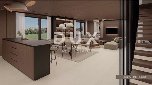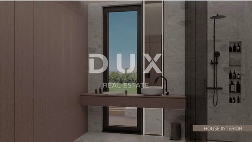 ISTRIA, OPRTALJ - un'imponente villa di design mediterraneo con piscina nel cuore dell'Istria Questa lussuosa villa si trova su una pittoresca collina nel cuore dell'Istria, ai piedi di Oprtalj, a pochi minuti di auto dalle città medievali di Montona e Grisignana, famose e frequenti destinazioni culturali e artistiche della bellissima Istria. Inoltre, nelle immediate vicinanze della villa si trovano anche importanti aziende vinicole istriane, come Roxanich, Tomaz, Fakin e Kabole, quindi soggiornare in questa fantastica proprietà consente un'esperienza completa di questa regione croata molto diversa. La villa è stata progettata da un famoso architetto croato con attenzione ai tradizionali metodi di costruzione istriani con un tocco di design moderno. Questa imponente villa di 250 mq si sviluppa su un terreno di 900 mq, garantendo così completo comfort e privacy con la possibilità di organizzare il giardino e lo spazio abitativo secondo i propri gusti. Situata sulle colline dell'Istria interna, questa incantevole villa offre una vista sui vigneti vicini, e intorno alla proprietà c'è una cintura verde, cioè un'area dove non è possibile costruire, che garantisce notevole privacy e tranquillità. La villa è composta da mobili di design di prima classe, un sistema di casa intelligente e gli interni sono elegantemente e modernamente arredati con piastrelle in ceramica di alta qualità, parquet straordinario e la cucina è dotata di elettrodomestici di prima qualità. Al piano terra della villa si trova uno straordinario open space composto da un ampio soggiorno, sala da pranzo e cucina, con wc soggiorno e una mini area benessere, e questo caldo spazio si apre sul giardino con piscina. Una bella scala in legno conduce al primo piano della casa dove si trovano 4 camere da letto con bagno en suite. L'intero spazio emana calore grazie agli splendidi soffitti in legno, e le finestre e le persiane sono realizzate con eleganti materiali in legno. La casa dispone di una spaziosa piscina riscaldata, e accanto alla piscina c'è un'area barbecue e una cucina all'aperto che garantiscono un'esperienza indimenticabile e socializzazione con amici e familiari. Questa è un'occasione perfetta per acquistare una proprietà nel cuore di una delle regioni più belle della Croazia, nota per il suo terroir, le prelibatezze gastronomiche, la natura incantevole e innumerevoli altre possibilità. Gentili clienti, la commissione d'agenzia viene addebitata secondo le Condizioni Generali. ISTRIA, OPRTALJ - un'imponente villa di design mediterraneo con piscina nel cuore dell'Istria