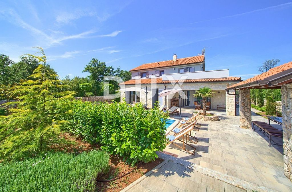 ISOLA DI KRK, interno dell'isola - Villa rustica con piscina Villa indipendente con una superficie di 185 m2, esterno rustico e interno moderno con un bellissimo ampio giardino e piscina, situata in una posizione tranquilla al limite della zona verde , a soli 5 km dal mare. Si compone di un piano terra dove si trova un ingresso dal quale si accede ad una mini area benessere (sauna e jacuzzi), una camera da letto, una zona open space con cucina, sala da pranzo e soggiorno con accesso al terrazzo, una lavanderia e un locale caldaia. Al piano superiore ci sono tre camere da letto e due bagni. È completamente attrezzato con tutto ciò di cui una villa ha bisogno. Dispone di ceramiche e sanitari di alta qualità, carpenteria in PVC, è riscaldato/raffreddato tramite pompa di calore (8 fan coil), dispone di pannelli solari per l'acqua calda. L'elettricità in casa è affittata a 22 KW, dispone di elettricità per caricare veicoli elettrici, un camino interno collegato ad una pompa di calore per riscaldare tutta la casa, riscaldare la piscina esterna, controllare il riscaldamento/raffreddamento e la piscina tramite un applicazione mobile, grill esterno, irrigazione, illuminazione completa della casa e del giardino, videosorveglianza, allarme e cisterna per la raccolta dell'acqua di ca. 50 m3. Il cortile è di 555 mq, dispone di una piscina (32 mq) attorno alla quale si trova un prato per prendere il sole, una vasca idromassaggio, una terrazza coperta con cucina estiva e barbecue e 3 posti auto. La casa viene venduta completamente arredata e attrezzata. È classificato per l'affitto turistico e ha 5 stelle. Sul lato orientale dell'isola di Krk si trova il comune di Dobrinj con il centro omonimo. Dobrinj si trova su una collina alta circa 200 metri ed è uno dei castelli medievali che in passato erano centri di alfabetizzazione. Per secoli Dobrinjština è stata una regione estremamente agricola. Erano rappresentate anche la zootecnia e l'olivicoltura, nonché lo sfruttamento delle risorse forestali. Il luogo è noto anche per i suoi costumi popolari colorati, gli eventi folcloristici, la scuola di sopela (lo strumento a fiato di Veglia) e la cucina tradizionale locale. In questo centro dell'isola prevalgono case in pietra autoctone e stradine strette in pietra che ricordano il passato. Non lontano da Dobrinje si trova la grotta Biserujka, che delizia con la sua bellezza e le interessanti forme precipitate. È l'unica grotta dell'isola, di cui ce ne sono più di 50, progettata per ricevere visitatori. Secondo la leggenda la grotta fu chiamata Biserujka (perla) dal tesoro ritrovato al suo interno, che apparteneva ai pirati locali. Gentili clienti, la commissione d'agenzia viene addebitata secondo le Condizioni Generali di Contratto www.dux-nekretnine.hr/opci-uvjeti-poslovanja Iva Mršić Agent s licencom E- www.dux-krk.com ISOLA DI KRK, interno dell'isola - Villa rustica con piscina
