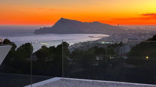 Questa imponente villa di lusso è attualmente in costruzione, progettata dal prestigioso studio di architettura Ramón Gandia Brull. Rappresenta uno degli esempi più straordinari di architettura contemporanea, caratterizzata da un'abbondanza di geometrie, luce e spazio. Situata su un terreno eccezionale ad Altea Hills, un complesso residenziale di lusso vicino alla costa mediterranea, questa proprietà offre una cornice incomparabile. La zona si distingue per gli ampi spazi verdi, le pinete e le viste panoramiche sul mare aperto, creando un'atmosfera di serenità e bellezza naturale. Il piano terra della villa ospita una camera matrimoniale con bagno privato, un bagno per gli ospiti e un'ampia zona giorno di 66 m² che comprende una cucina e un soggiorno con accesso a una terrazza coperta. Da qui si accede alla zona relax e a una splendida piscina a sfioro, ideale per godersi il clima mediterraneo. Al primo piano si trovano la zona notte e la zona notte, composte da tre camere da letto con bagno privato, tra cui la camera padronale, che vanta ampie terrazze aperte. Questo spazio è stato progettato per offrire il massimo comfort e privacy. La villa si trova all'interno dell'esclusivo complesso Altea Hills, che offre sicurezza 24 ore su 24 e vicinanza alla costa mediterranea, garantendo una perfetta combinazione di lusso, privacy e accessibilità.