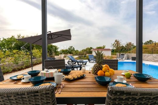 Nell'idilliaco ambiente del villaggio di Boškari, non lontano dalla città storica di Svetvinčenat, c'è un'incantevole villa che offre un'eccezionale combinazione di pace e verde, pur essendo vicina alle colorate città di Pola, Parenzo e Rovigno. Questa proprietà unica non è solo una casa, ma un'opportunità per vivere, rilassarsi o rilevare un'attività turistica di successo, con un'impressionante classificazione a quattro stelle. La casa, come un nuovo edificio, risplende in ottime condizioni grazie alla regolare manutenzione. La superficie netta della villa è di 130 metri quadrati, con una terrazza superiore di 32 metri quadrati e una terrazza inferiore coperta di 20 metri quadrati, che si estende fino al solarium con una piscina di 30 metri quadrati. La proprietà si trova su un ampio terreno di 890 m2, circondato da siepi colorate e ulivi, e il cortile è illuminato e dotato di un sistema di irrigazione. Oltre alla posizione attraente, la villa si distingue come una casa intelligente, utilizzando una pompa di calore e riscaldamento a pavimento per un riscaldamento confortevole, mentre i condizionatori sono distribuiti in tutte le stanze e nella zona giorno per un raffreddamento efficace durante i mesi estivi. Videosorveglianza, un sistema di allarme integrato e porte scorrevoli elettriche controllate tramite app e chiavi remote garantiscono una sicurezza completa. Il primo piano della casa offre un'ampia zona d'ingresso, una cucina open space con isola e sala da pranzo, un soggiorno, una camera da letto, un bagno, una scala, un ripostiglio e un'area tecnica. Il secondo piano comprende un'altra spaziosa camera da letto, ciascuna con il proprio bagno e accesso all'ariosa terrazza. Inoltre, la proprietà comprende una casa in legno per lo stoccaggio. La piscina, illuminata e con la possibilità di riscaldamento tramite una pompa di calore, completa ulteriormente l'atmosfera lussuosa di questa splendida villa.