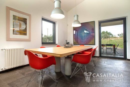 Villa in stile contemporaneo, circondata da un terreno privato di 2 ettari, con uliveto, a 5 minuti da Vetralla e a un'ora d'auto da Roma. Con luminosa zona giorno open-space, cucina, 5 camere, 6 bagni, per una superficie totale di 340 mq lordi. Posizione comoda e riservata, immersa nella natura.