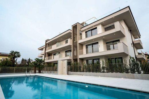 L'attico con stupenda vista lago fa parte di un complesso residenziale esclusivo composto da sole 14 unità abitative e offre l'accesso a una piscina condominiale per il completo relax dei residenti. L'appartamento si trova al secondo piano ed è servito da ascensore, garantendo così massimo comfort e accessibilità. La proprietà è caratterizzata da un ampio soggiorno/cucina che si affaccia su una terrazza coperta di mq. 18, perfetta per godersi la vista lago con pranzi all'aperto. Inoltre, dispone di due camere da letto dotate di balcone di mq. 6 e due bagni. Un valore aggiunto è rappresentato dal terzo piano dove si trova uno spettacolare solarium di mq. 65 con gazebo a copertura automatica e predisposizione per vasca idromassaggio: il luogo ideale per trascorrere piacevoli serate in compagnia o prendersi cura del proprio benessere personale godendo della vista panoramica sul lago. Completano la proprietà un garage privato, una cantina spaziosa e un posto auto esterno.