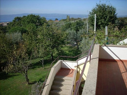 Proponiamo in vendita bellissima villa bifamiliare con piscina fuor iterra e splendida vista lago. La proprietà è composta da 7000 mq di parco, con uliveto produttivo, pozzo artesiano, sistema di irrigazione per il giardino ed illuminazione esterna. La posizione strategica permette di godere della tranquillità della campagna ma comunque di poter raggiungere il paese in pochi minuti. L'immobile di 320 mq disposto su tre livelli, è così composto: al piano terra troviamo un ampio salone con camino, zona pranzo rialzata e piccolo angolo studio, la cucina abitabile con forno a legna e zona barbecue, lavanderia e bagno. Il salone e la cucina hanno l'accesso ad comodo terrazzo panoramico dove poter trascorrere momenti conviviali godendo della bellissima vista. Salendo al primo piano troviamo ingresso, una camera matrimoniale con bagno ensuite e balcone, due camera matrimoniali di cui una con balcone e un ampio bagno con vasca e doccia.