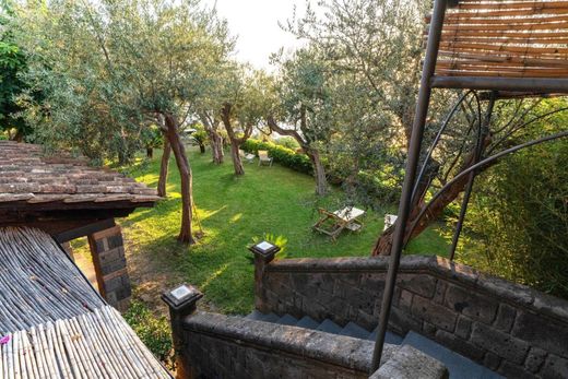 Il secondo appartamento si trova al livello del giardino ed è raggiungibile percorrendo il vialetto privato e poi scendendo le scale che portano al giardino pianeggiante. Al suo interno troviamo una cucina, con tettoia in terracotta con pavimento in cotto a spina di pesce e muri in tufo. Dalla tettoia si accede ad un corridoio che conduce ad una camera matrimoniale con salottino e bagno e doppia balconata con affaccio su uliveto produttivo.