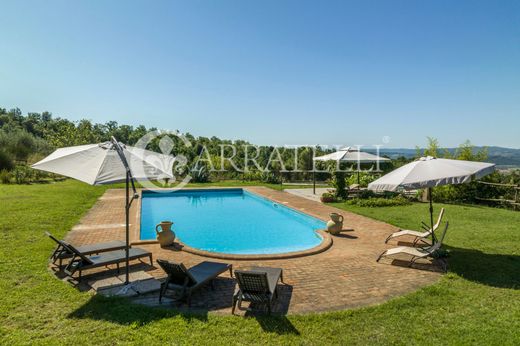 La proprietà posta in splendida posizione panoramica su una collina gode di spazi esterni ampi e curati. Sono presenti circa 7h di terreno tra seminativo, vigneto, bosco e uliveto (con 600 piante).