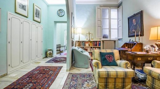 APPARTAMENTO IN CENTRO A SIENA con possibilità di garage - In palazzo notificato nel centro storico a Siena, nella contrada della Pantera, vendiamo appartamento posto al piano primo. L'immobile ha mantenuto molte caratteristiche che ne evidenziano la storicità, come i soffitti affrescati e in parte a cassettoni, ed il cotto originale. La superficie si estende per circa 270 mq, su un unico livello. Da una scala monumentale condominiale accediamo all'appartamento accogliente con un susseguirsi di salotti con finestre panoramiche sul Duomo e sui giardini privati molto curati. La cucina nella quale domina una grande cappa per cucinare ed una dispensa, una sala da pranzo doppia, 3 camere, due bagni e un bagno di servizio con lavanderia. L'appartamento si presenta in buono stato.