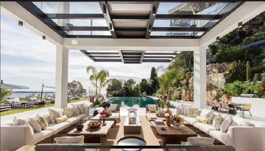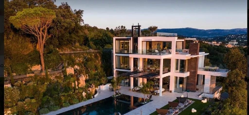 CANNES - Magnifica proprietà contemporanea, tranquilla e non trascurata, immersa in un ambiente verdeggiante e con una superba vista sul mare. La proprietà di 1100 m2 comprende: Al piano terra: un salotto estivo che si apre su una splendida terrazza, una cucina completamente attrezzata, servizi igienici per gli ospiti e un ascensore. Al piano terra: 3 camere da letto (1-2-3) in suite con bagno e cabina armadio, 1 altra camera da letto (4) che si apre su una terrazza, una sala cinema, una spa e l'ascensore. Al primo piano: 3 camere da letto con bagno interno (5-6-7) con il loro bagno e spogliatoio, un soggiorno e diverse terrazze e l'ascensore. Al secondo piano: una suite padronale (8) con camera da letto molto grande, bellissimo bagno, zona beauty, spogliatoio e ascensore, terrazza con vista panoramica. Padiglione indipendente per amici con due camere da letto (9-10) in suite con bagno e spogliatoio, 2 appartamenti (11-12) con soggiorno, camera da letto, bagno e spogliatoio. Dotazioni interne: ascensore, mobili su misura, 2 cucine attrezzate, di cui una professionale con cella frigorifera, alloggi per il personale, presa di corrente per eventi, 2 camini, 4 posti auto interni, jacuzzi panoramica, palestra, hammam, sauna, sala di sicurezza, sala proiezioni, acquario, piscina riscaldata in estate, cucina esterna e barbecue, due cascate, campo da bocce, terrazza sul tetto trasformata in giardino, 2 camini esterni, sentieri panoramici nel giardino. I bambini rimarranno a bocca aperta nella sala cinema con play station che ospita un acquario gigante dove ammirare le diverse diversità di pesci e presto anche le razze. Su richiesta possiamo mettervi a disposizione degli chef. Capacità per 12 persone nelle suite e 6 persone nelle stanze extra nella villa principale. Per la casa annessa, capienza per 4 persone nelle suite e da 7 a 10 persone in un appartamento. Il prezzo include: bevande, riscaldamento della piscina esterna su richiesta con almeno 3 giorni di anticipo, prodotti di benvenuto del marchio Aesop, bevande del minibar esclusi gli alcolici, un responsabile/maggiordomo 8 ore al giorno. Un responsabile tecnico per 35 ore alla settimana, 2 o 3 donne delle pulizie a seconda del numero di clienti, pulizia di tutte le aree comuni interne ed esterne due volte al giorno.