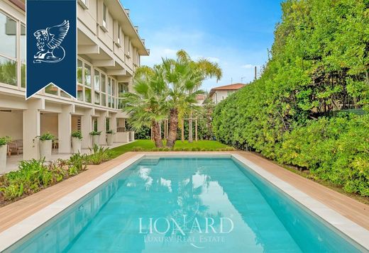 Questa lussuosa villa di 640 mq a Marina di Pietrasanta offre un'esperienza abitativa raffinata a soli 350 metri dalle spiagge dorate della Versilia. Disposta su tre livelli e con un totale di otto camere da letto, è ideale per famiglie numerose o per intrattenere gli ospiti in un ambiente privato ed elegante. Recentemente ristrutturata in stile architettonico moderno, la villa è luminosa e ariosa, con ampie vetrate, un impianto fotovoltaico e spazi accuratamente progettati. Al piano terra, i servizi pratici includono una zona lavanderia, una caldaia e un bagno di servizio con accesso al giardino. All'esterno, una piscina a sfioro e una cucina esterna offrono una vita all'aria aperta rilassata e di lusso. Il primo piano ospita gli spazi abitativi principali: un luminoso soggiorno open space, una cucina moderna, una camera da letto e un bagno. Il piano superiore è dedicato alla zona notte con sei camere da letto con bagno privato, oltre a due camere da letto aggiuntive e una stanza extra versatile. Situata in un rigoglioso giardino paesaggistico di 600 mq, questa villa coniuga privacy e accessibilità. Vicina all'artistica Pietrasanta e a rinomate località come Forte dei Marmi e Viareggio, la tenuta è la scelta ideale per chi desidera lusso, comfort e un'immersione culturale nell'esclusiva costa della Versilia. Rif: 13302