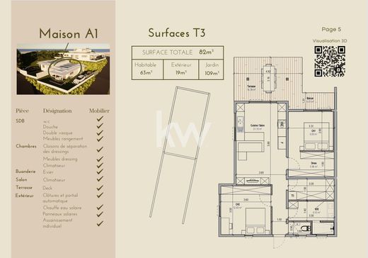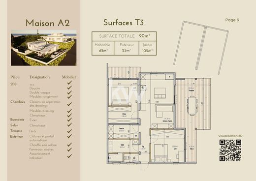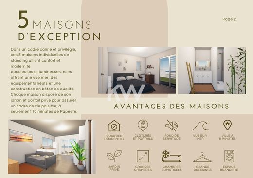 Concedetevi la tranquillità di un ambiente piacevole con queste due case F3 (rif. A1 e A2) in vendita in futuro stato di completamento (VEFA), in posizione ideale ad Arue, vicino al mare. Situate al termine di una servitù di passaggio, queste case godono di un ambiente tranquillo pur essendo vicine a scuole, negozi e altri servizi. Ognuna di queste case dispone di un ampio e luminoso soggiorno con cucina a vista, perfetto per trascorrere momenti conviviali. Includono inoltre due camere da letto climatizzate per un maggiore comfort, un bagno con WC e una pratica lavanderia. Potrete inoltre usufruire di una terrazza coperta e di un giardino di 100 m², uno spazio ideale per i vostri momenti di relax o per i vostri progetti all'aperto. Queste case sono dotate di pannelli solari, che consentono il risparmio energetico. Un sistema di scarico individuale garantisce una gestione moderna e autonoma. Inoltre, ogni casa dispone di due posti auto e di un cancello elettrico per maggiore sicurezza e comfort. Tutto questo in un ambiente tranquillo, a pochi minuti dal mare e con facile accesso a scuole e negozi. Queste case sono l'occasione ideale per uno stile di vita sereno, che unisce comfort e comodità quotidiane. Non aspettare oltre per visitare queste case che uniscono pace, comfort e vicinanza. Contattaci per maggiori informazioni e per programmare la tua visita!