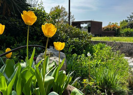 Si tratta di una delle più belle case della Valpolicella, con ampie vetrate che danno sul portico adiacente al giardino piantumato.