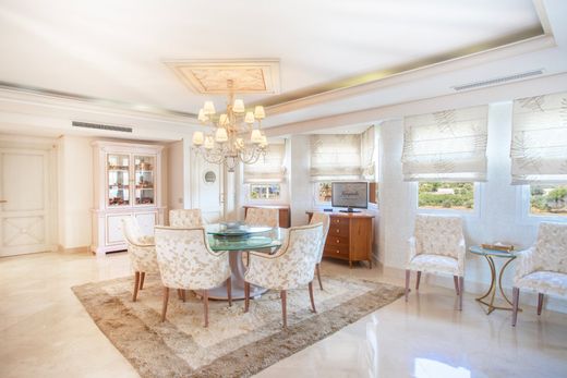 Attico in prima linea con vista panoramica sul mare nel Kempinski Resort di Estepona. Vivi la vita in prima linea sulla spiaggia in questo spazioso attico, situato nell'ala privata del prestigioso Kempinski Hotel Bahía. Situata all'interno di un resort di livello mondiale, la proprietà vanta 721 m² di eleganti interni e una terrazza di 258 m² esposta a sud con vista aperta sul Mediterraneo, sui rigogliosi giardini subtropicali e sulle scintillanti piscine. Accessibile tramite ascensore privato, l'appartamento si sviluppa in un layout sofisticato che comprende sei camere da letto con bagno privato, tra cui una lussuosa suite padronale con soffitti a volta, vasca idromassaggio, cabina armadio e terrazza con vista mare. Un'area di servizio separata con accesso indipendente garantisce privacy e comfort a tutti. La vita interna ed esterna si fonde perfettamente con diverse zone giorno, una sala da pranzo formale e una terrazza all'aperto ideale per prendere il sole o godersi cene al tramonto. La cucina è completamente attrezzata con elettrodomestici Siemens e la proprietà include tre posti auto e riscaldamento a pavimento in tutta la proprietà. Con accesso privilegiato ai servizi del resort – spa, piscine interne ed esterne, beach club, ristoranti e centro benessere – questa casa offre non solo lusso ma anche flessibilità, con la possibilità di affittarla direttamente dall'hotel. Un'opportunità unica sulla Costa del Sol.