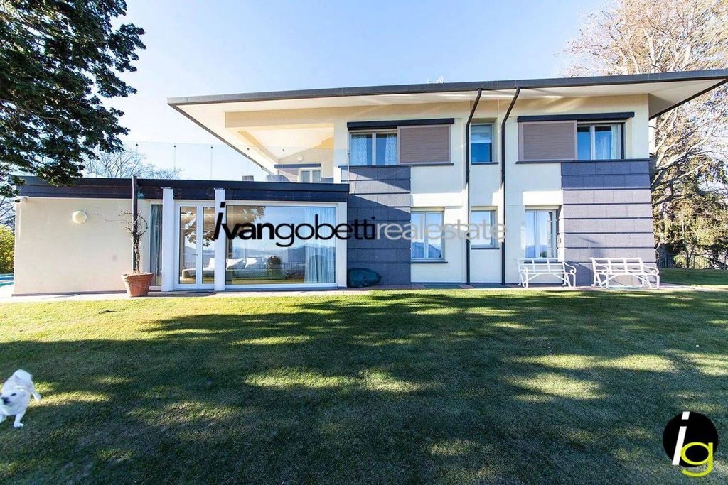 Lussuosa villa moderna costruita nel 2003 sulla cima di un promontorio dominante tutto il Lago Maggiore, il Lago di Varese, e la pianura milanese.