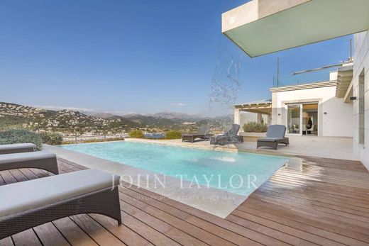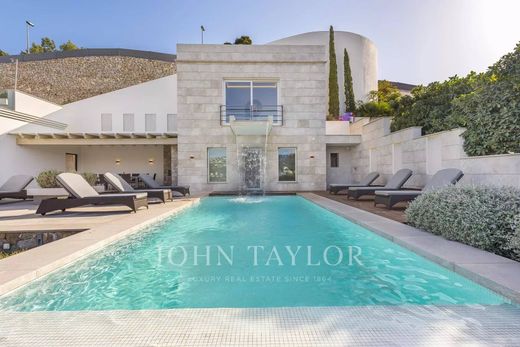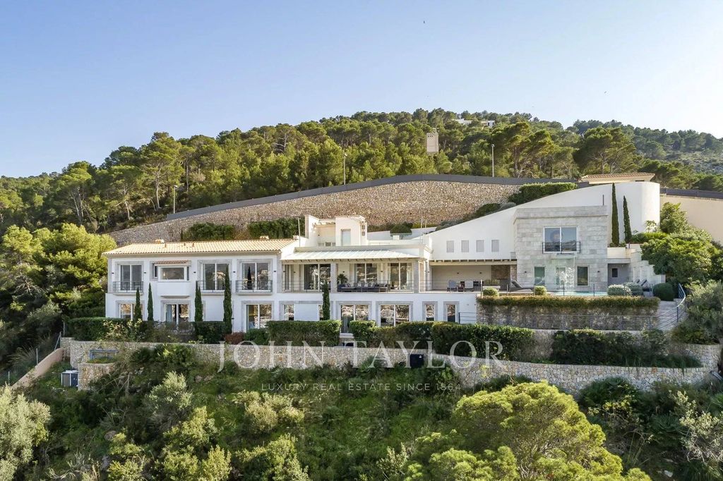 Villa di lusso in posizione privilegiata. In questa villa di recente costruzione, 5 camere da letto con bagno privato sono distribuite su 600 m2 di spazio abitativo. La costruzione e il design moderno attraversano l'intera casa. La cucina a pianta aperta completamente attrezzata non lascia nulla a desiderare. Dalla camera da letto, dall'accogliente zona giorno con camino o dalla cucina, ogni stanza offre una vista mozzafiato sulla baia di Puerto de Andratx e sul porto. All'esterno si trova la piscina a sfioro riscaldata con zona relax e un grande tavolo da pranzo con barbecue. Un'attrazione speciale è la sauna interna, da cui si gode di una magnifica vista sul mare grazie all'ampia vetrata. I tramonti mozzafiato sono garantiti.
