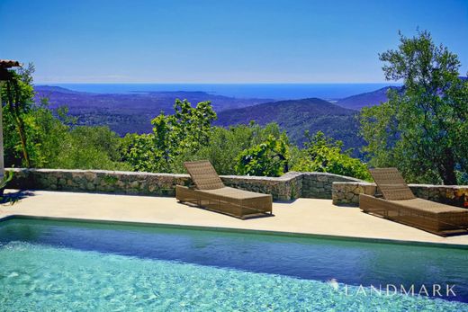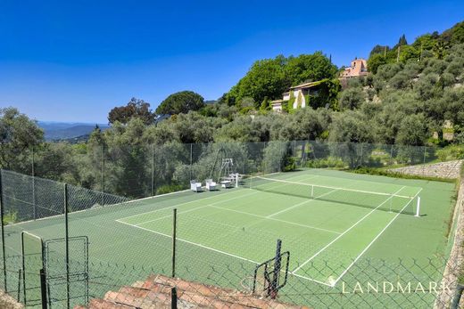 CO-ESCLUSIVA - Questa straordinaria proprietà esemplifica l'arte di vivere sulla Costa Azzurra, con magica serenità. Questa splendida proprietà, elegantemente ristrutturata e immersa in un uliveto secolare di oltre 25.000 m², vanta circa 375 m² di spazio abitabile, suddivisi in una casa principale in pietra con 5 camere da letto, una dependance, anch'essa in pietra, con 4 camere da letto e una dependance con un ampio ufficio e una sala ricreativa. La piscina riscaldata di 14,5x7 m è delimitata da ampie spiagge e da una pool house. Un campo da tennis completa questi servizi eccezionali. La vista panoramica sul mare si estende fino alla baia di Cannes e alle isole di Lerino, proseguendo verso ovest con il massiccio dell'Estérel e i suoi colori cangianti e il lago di Saint Cassien. A piedi dal pittoresco villaggio di Cabris, nella più assoluta tranquillità, l'uliveto con le sue terrazze ben curate ospita numerose specie mediterranee, tra cui 450 magnifici ulivi. Nella proprietà si trovano un ampio garage doppio, un frantoio, due pozzi e altri annessi. L'aeroporto di Nizza Costa Azzurra dista 40 km, quello di Cannes Mandelieu 20 km, così come Sophia Antipolis e il mare. Numerosi campi da golf sono raggiungibili in meno di mezz'ora; il più vicino dista 4 km. È possibile raggiungere diverse stazioni sciistiche in giornata. La maggior parte dei servizi del villaggio sono raggiungibili a piedi. Fascicolo completo su richiesta, comprese planimetrie dettagliate. (Parliamo anche inglese. Parliamo anche tedesco) Le informazioni sui rischi a cui è esposta questa proprietà sono disponibili sul sito web di Géorisques: georisques.gouv.fr